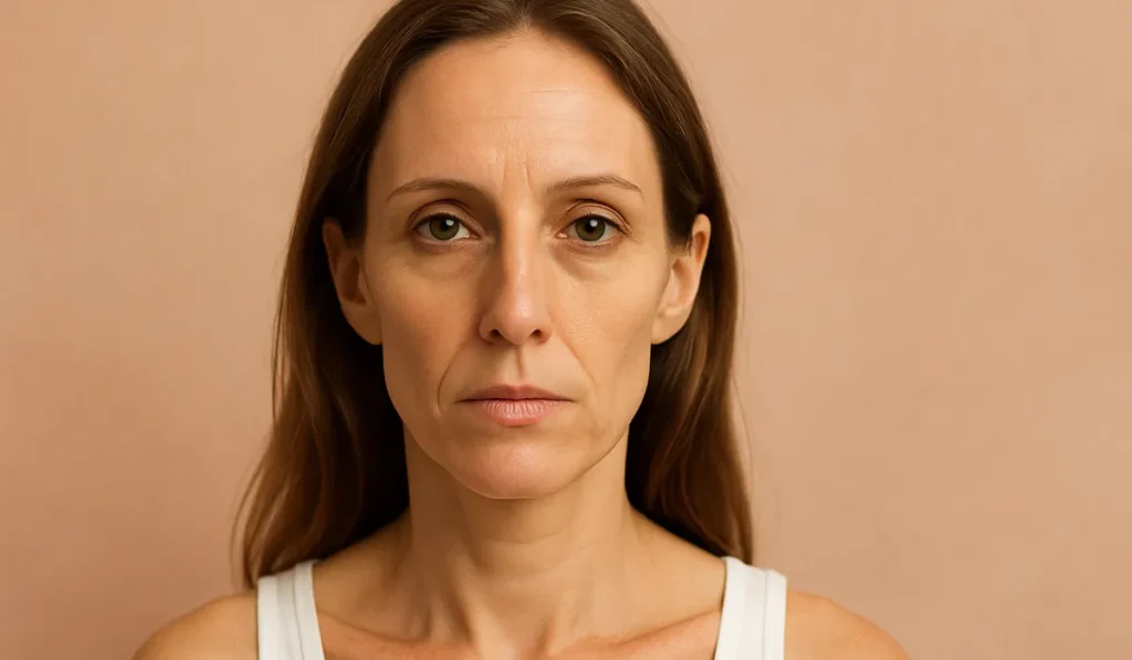 Poor nutrition, chronic illness, smoking, or prolonged stress can contribute to collagen breakdown, loss of fat stores, and a drawn facial appearance.
